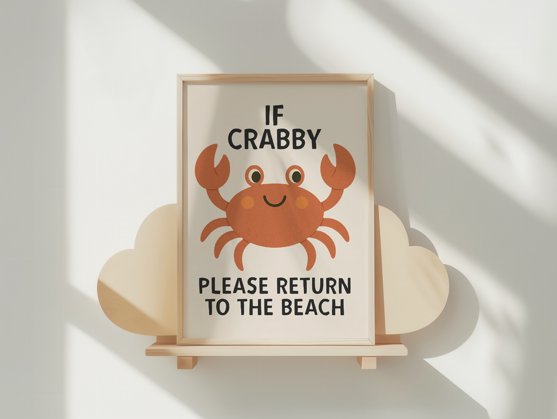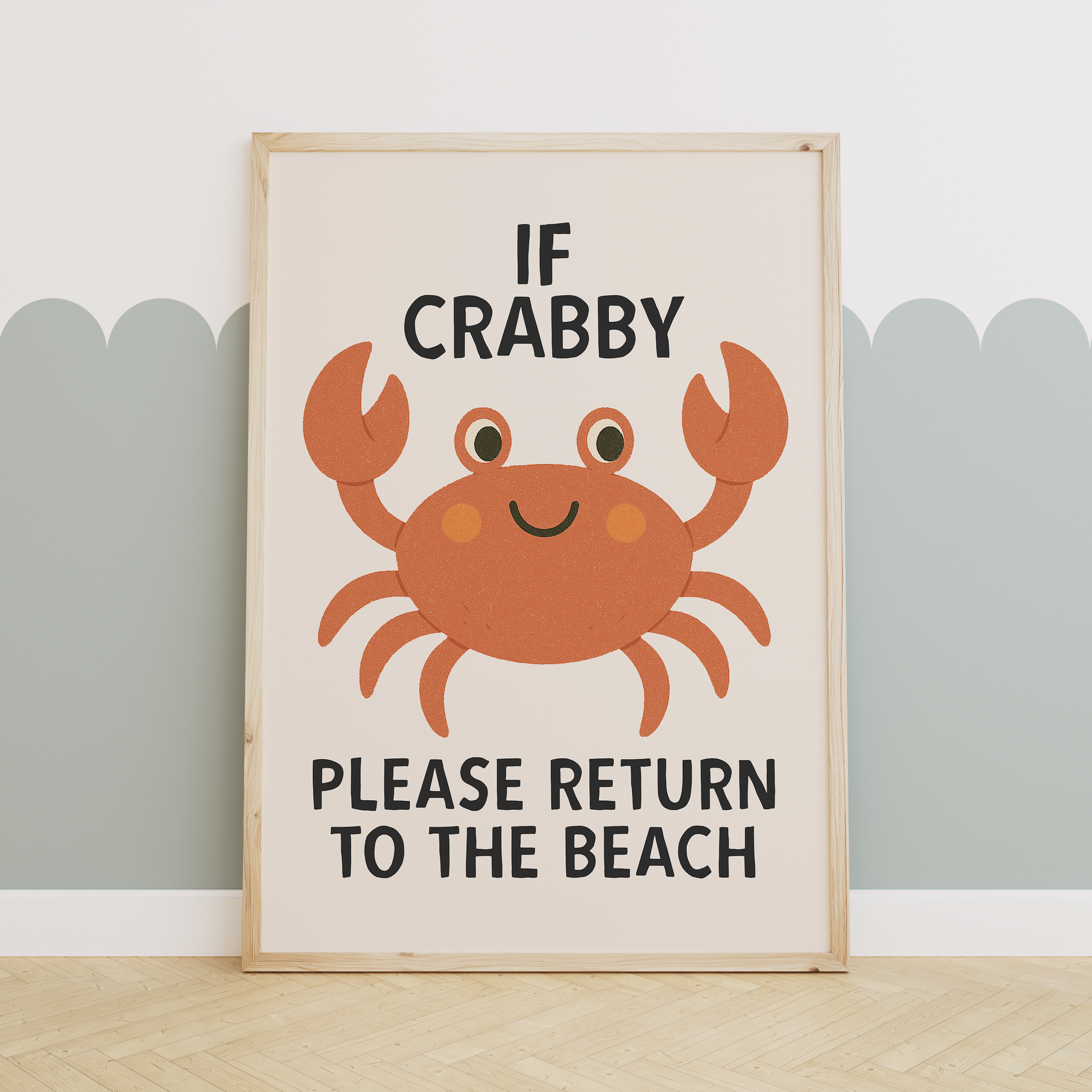If Crabby Please Return To The Beach | Black and Cream | Art Print
